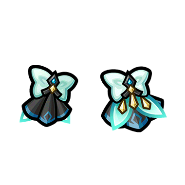 - 蝶の翅をイメージしたリボンがあしらわれたヘッドドレス。動くことで蝶の翅が揺らめき、着ける者も思いもよらぬ結果をもたらす。