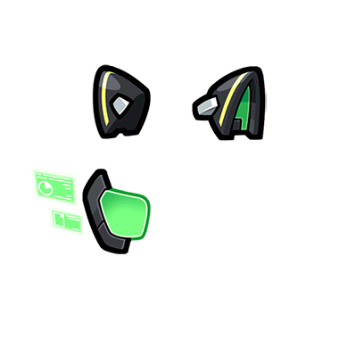 - 宇宙海賊オクタノヴァの参謀が落とした機械金属を解析し、 改造を施した猫耳風ヘッド。 リーダーに振り回されがちな苦労人御用達の一品で、データ解析に基づいた最適な動きを常に表示してくれる。