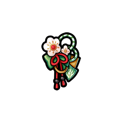 - 鮮やかな紅色が印象的な髪飾りに、逆巻く炎や流れる熱気を思わせる流文様が施されている。いざ戦いとなれば華々しい大立ち回りをすることができるだろう。