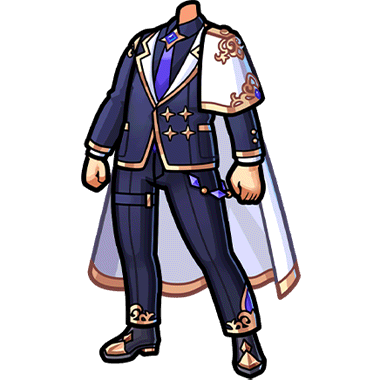 - セリーナをイメージした男性用の服。洗練されたデザインと深い色合いが魅力的で、全体に優雅な雰囲気を漂わせる。