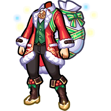 - もこもこがたくさんついている暖かそうなサンタの服。 背中の大きな袋にはプレゼントがたっぷり詰まっている。