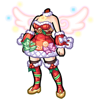 - もこもこがたくさんついているラブリーなサンタの服。 キラキラの光の羽が可愛さを際立たせる。