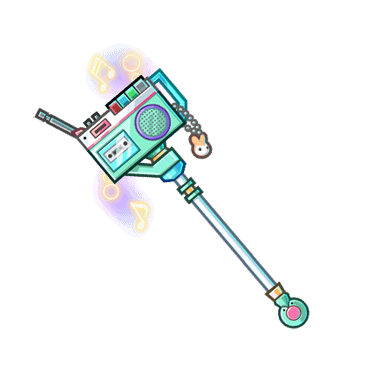 - 音楽を流しながら戦える、ラジカセを内蔵した杖。どんな時でも好きな音楽を聞けると好評。