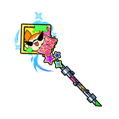 - 常在戦場を掲げる流派がその場の交通標識で作った杖。見た目に反して高い魔力を宿しており、「リミミン可愛い」と一瞬和んだ敵を欺くこともできる。