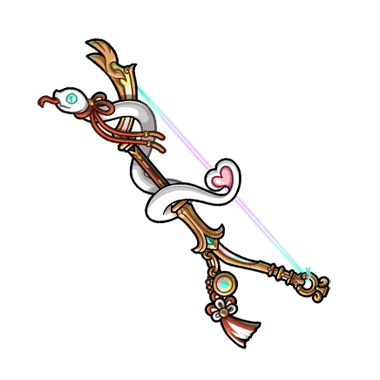 - 健康と再生の加護を宿した梓弓。放つ者の英気を養い、新たな変化を迎える手助けをしてくれるという。舞巳の十二神将インダラが扱う武器の一つである。