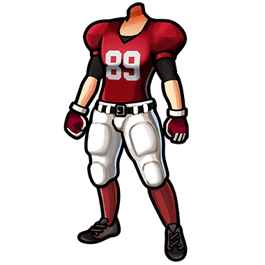 アメフト選手用のプロテクター。「情熱」を表すレッドカラー。