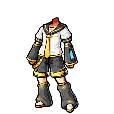 - 鏡音レンの服。黄色、黒、白が特徴。長いネクタイ、長めのパンツが特徴。