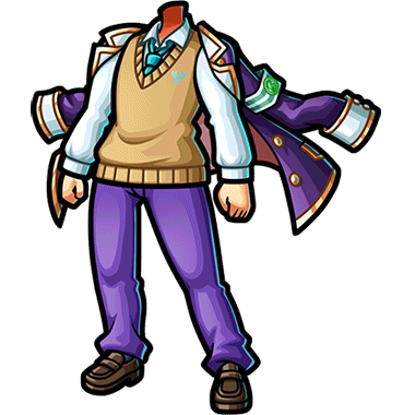 - 学園指定の男子用制服。ジャケットと腕章は風紀委員の証。