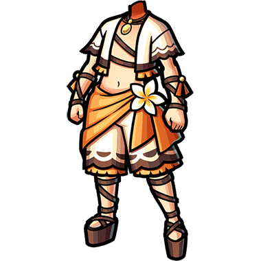 - 常夏の国で一番の職人が仕立てた装束。 トレードマークの花飾りがついた装束は、身に着けた者に"愛と勇気"を与える。