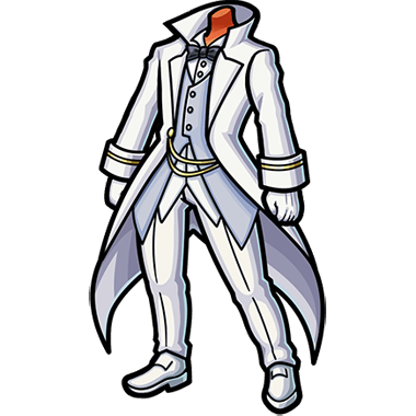 - クレイマンの衣装。白を基調とした色使いの燕尾服となっている。