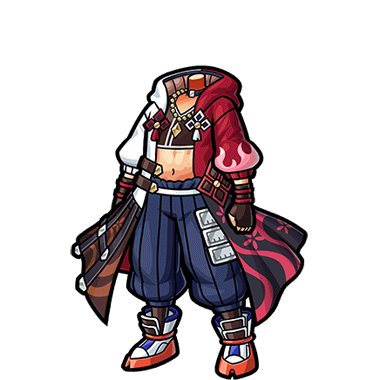 - シノギの忍び装束。 忍者にしては派手な装束は、シノギの自信の表れ。