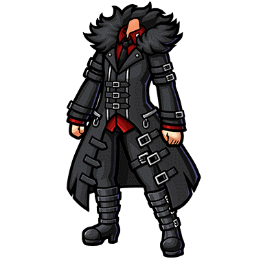 - 黒のゴシックコートの下に着ているシャツを赤に変えて、少しだけ鮮やかに。レイヴンシルクハットとあわせるとちょっとした特別感を味わえる。