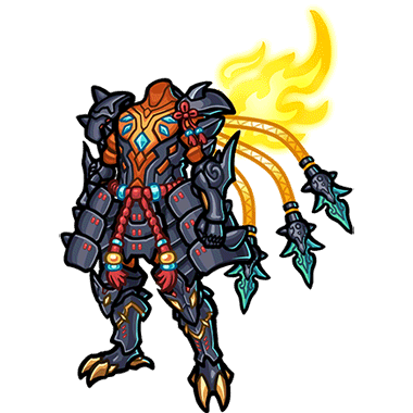 - 迅雷の鬼神をイメージした黒鉄鎧。闇を切り裂く閃光を放つ。