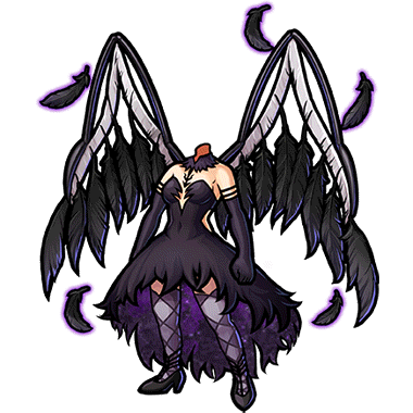 - 悪魔ほむらが身につけている禍々しい翼をまとった漆黒のドレス。怪しくも美しい羽根が舞っている。
