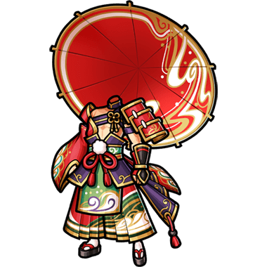 - 鮮やかな紅色が印象的な鎧に、逆巻く炎や流れる熱気を思わせる流文様が施されている。いざ戦いとなれば華々しい大立ち回りをすることができるだろう。