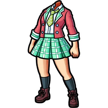 - ティアの制服。袖元がやや短くなっていて、明るい緑が基調となっている可愛いデザイン。
