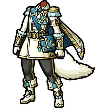 - 五穀豊穣の神の御使いである白き狐の力が宿った戦服。 この白狐に捧げられた鎧には、証として麦の穂と狐尾があしらわれている。