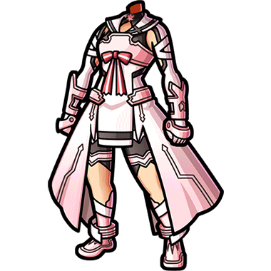 - 結城友奈の勇者服。桃色を基調としたものとなっている。胸元のリボンが特徴的。
