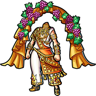 - ディオニュソスの加護が強く宿った祭服。 この祭服を着ていると作物がよく育つ他、おいしいぶどうが生えてくるので携帯食としても重宝する。