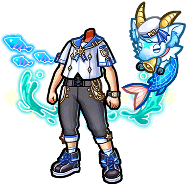 - マリーをイメージした男性用の服。周りをプッコが舞っていて少し涼しさを感じる。