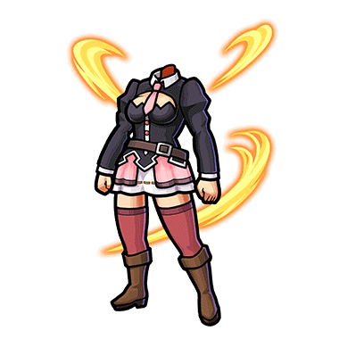 - 開いた胸元、短いネクタイ、更にミニスカートと可愛いデザイン。アークウィザードらしさを追求しためぐみんの衣装とは別の可愛さがある。