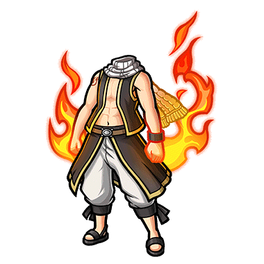 - ナツが自身の魔法を使用した状態。養父イグニールからもらったマフラーは、たとえ何があろうと身につけている。マフラーの下の傷は、幼い頃の自分との抗争でつけたもの。