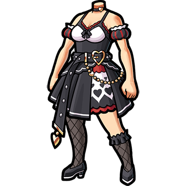 - 随所にハートをあしらった黒基調のドレス。 とある女王のドレスを見た職人が、刺激を受けて一晩で作り上げた逸品。