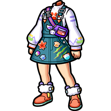 - かぷりっちょ、2022年秋の新作。 デニム生地で作られたスカートにふんだんにあしらわれたワッペンや缶バッチの数々が遊び心を加速させる・・・!