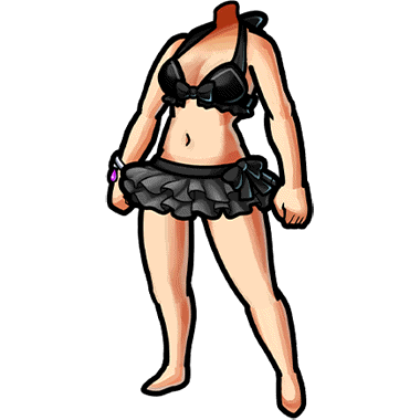 フリルがふんだんに使用されているビキニ。 フリルのかわいらしさと黒の大人っぽさのアンバランスが絶妙な一品。