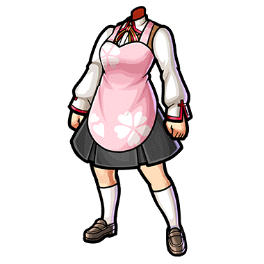 - 桜が衛宮邸で料理をするときに制服の上に身に着けるエプロン。ピンク色で桜の柄が入っていて、桜にとても似合うものとなっている。