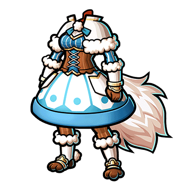 - 風の国「ヴィント」の親衛隊が身に着ける女性装備。可愛らしいドレス仕様だが、闘う姿はそんなことを感じさせないほど荒々しくなる。