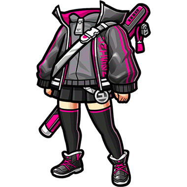 - 紅紫と黒を基調にしたジャージ。 動きやすくて防御力も見た目よりずっと高い。