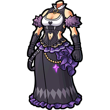 - 心を落ち着ける力があるという紫星の結晶があしらわれたドレス。 身につけると、不思議と状況打破できる妙案が思いつくという。