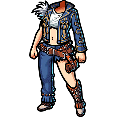 - 聖人の一人、神裂火織の服。Tシャツを胸下あたりで縛り、ズボンは片方を切りそのおみ足を存分にさらしている。正直言って、大変奇抜な一品。