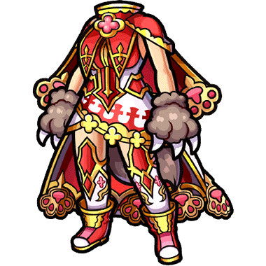 - 童田明治が着ている衣装。赤と白が印象的で、ケープと尻尾が特徴。