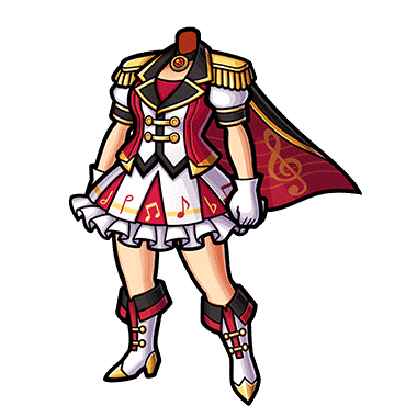 - とある楽団の制服。武器で音を奏でる伝説の音楽集団が着ていた衣装として、現在も楽団に受け継がれている。 スカートにも音楽記号が描かれている。