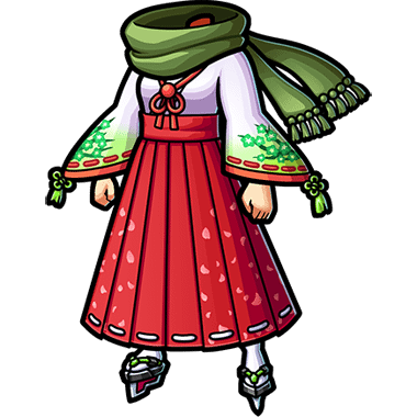 - 和風の柄が入った巫女装束。 マフラーを巻けば冬でもあったかいのだとか