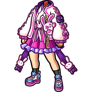 - 月兎の力を宿したドレス浴衣。腰に据えた月兎のぬいぐるみは、いつでも君のそばにいるよ。
