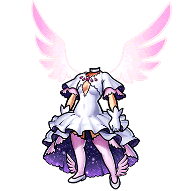 - 大天使を彷彿とさせる羽を持った豪奢なドレス。何枚も布を重ねたスカート部分がふんわりとしていて、清楚なイメージも併せ持つ。自分の道を自分で選んだ強い決意を持った少女が纏っていた。