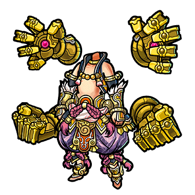 - 三面に修羅の顔では恐怖を、6つの腕の宝貝では絶望を与えたと伝えられる天界軍の将、中壇元帥・ナタの宝衣。その姿から世の人々は彼を「三面六臂の修羅」と呼び始めたと言う。