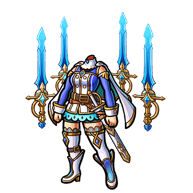 - 白騎士の中でも功績を積み重ねた幹部のみに配布される団服。団服に宿る水属性の魔力がエーテル粒子を剣状に束ね、常に身を護る鎧となっている。クイーンナイツは男性に比べ属性魔力が強く、これら剣を器用に操り闘う。