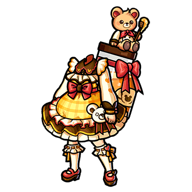 - お菓子だけでなく全ての料理に精通した厨房の長、料理長のみが着用を許される制服。大きなはちみつ瓶ははちみつカフェ料理長の誇り。