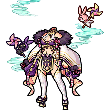 - 飛躍と月と豊産の加護を宿した巫女装束。マハラの力を借り、時をも飛び越え未来へと飛躍する力を与えてくれるという。