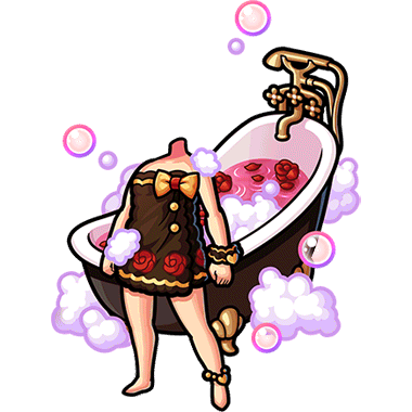 - 神に祈りをささげる前の沐浴で巫女たちが纏う衣装とバスタブがセットになった防具。 こう見えて防御力は高い。