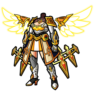- 光の大精霊が憑依した衣装。大精霊の憑依によって、無限の魔力を得ている。魔力の使い方は様々だが、誰かを守ろうとするとき、より強い力を発揮する。