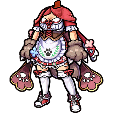 - 童田明治が普段身に着けている衣装。オオカミのしっぽのように見えるのは彼女が背負っているぬいぐるみのマカロニちゃんのもの。
