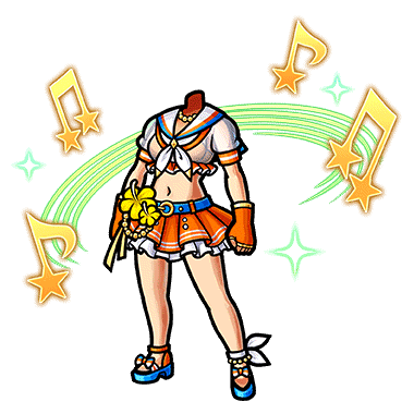 - ライブ終盤の衣装変え用にモデルアップされたリン用の衣装。装飾が追加されているだけでなく、全体のデザインと色合いも変更されている。