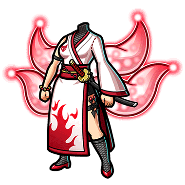 - とある侍の装束。不思議な炎を身に纏い、敵を一網打尽する。狐のような尻尾が目撃されているが、真相は如何に……。