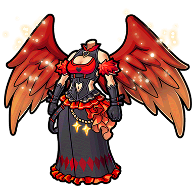 - 鍛錬を続け、烈火の如く燃え盛るような熱い意志を身に着けた者がこのドレスを身に着けると、証として清らかな翼が顕現するという。 過去、それほどの使い手は数える程しかいない。