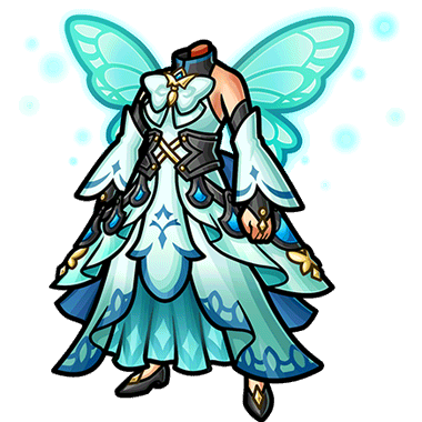 - 蝶をイメージしたドレスで背中の翅が特徴的。纏う者の所作1つ1つが大いなる結果へと続くと言われている。